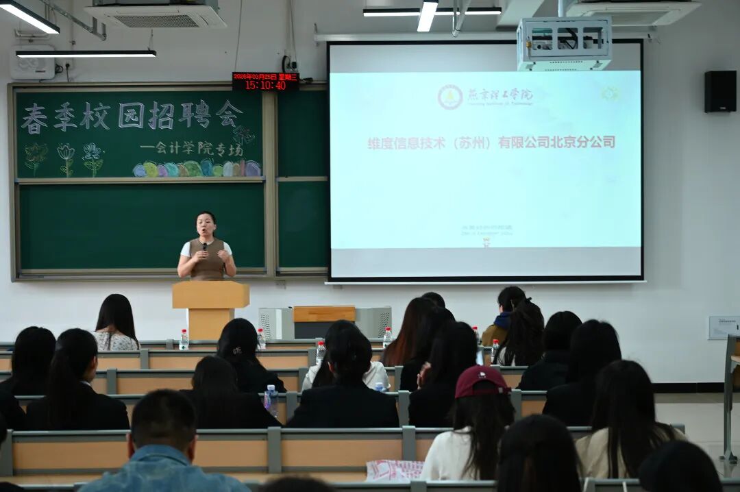 为深入贯彻“实施就业优先战略”的重要部署,切实推动毕业生高质量充分就业,搭建学生与用人单位高效对接平台,燕京理工学院会计学院于3月25日举行春季校园会计专场招聘会。在会计学院院长杨良教授的组织和安排下,本次活动邀请维度信息技术(苏州)有限公司北京分公司、中国人寿保险股份有限公司燕郊镇营销服务部等企事业单位进校宣讲。 活动现场 各企业招聘负责人依次登台宣讲,结合企业发展历程与行业发展态势,详细介绍企业概况、核心业务布局,精准解读会计相关岗位的具体需求、任职标准。同时围绕企业专属人才培养体系、岗位晋升通道、职业发展规划展开细致讲解,助力大家精准把握用人单位的人才选拔要求,明晰行业发展新趋势与职业发展新方向。 活动现场 宣讲环节结束后,现场进入简历投递与面对面洽谈阶段。毕业生携带精心准备的求职材料,结合自身专业方向和职业规划,与企业招聘人员深入交流,就岗位职责、实习安排、薪资待遇及晋升机制等问题进行详细咨询。部分企业现场组织简短面试,活动现场气氛热烈,学生参与度高,提前了解就业市场动向。 活动现场 参与学生纷纷表示,此次招聘会企业类型多元、岗位信息真实具体,既拓宽了求职视野,也帮助他们在实战中检验自身能力、明确努力方向。学院后续将持续跟踪学生签约进展,同步开展简历优化、模拟面试、就业指导讲座等配套服务,形成精准对接的就业服务体系。 活动现场 本次专场招聘会进一步深化了会计学院与行业企业的交流合作,是推动毕业生高质量就业的务实举措。未来,会计学院将继续紧扣行业发展脉搏,整合优质企业资源,创新就业服务形式,助力学生在广阔的职业舞台上脚踏实地、行稳致远。 合影留念 文/会计学院 审核/政审2502 许诗曼