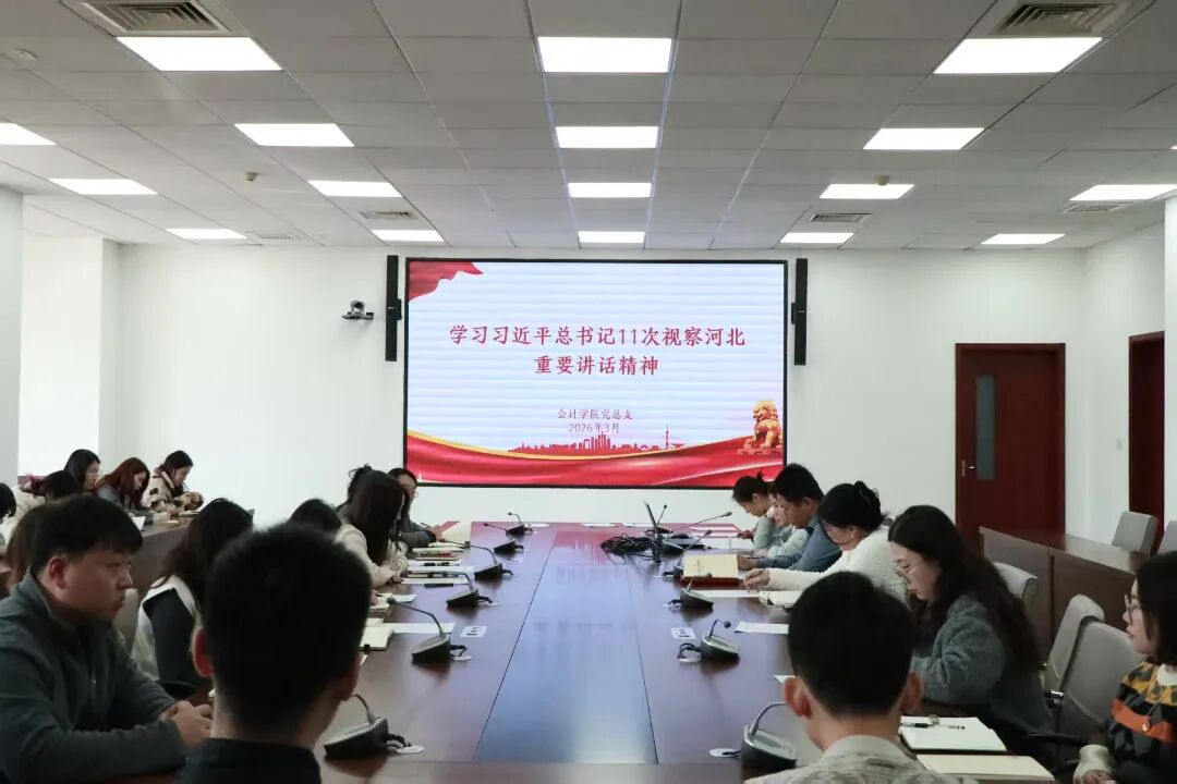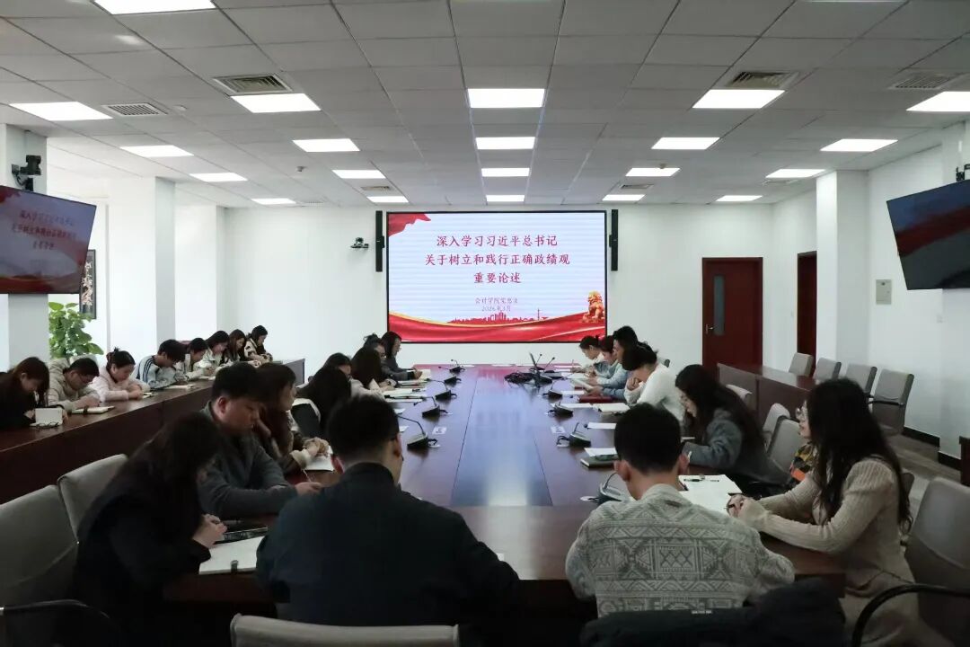 为深入学习贯彻习近平新时代中国特色社会主义思想,全面落实党中央关于树立和践行正确政绩观的部署要求,切实加强学院党组织思想政治建设,2026年3月20日,会计学院党总支在328会议室召开树立和践行正确政绩观学习教育读书班。学院党总支书记胡国超主持会议,会计学院院长杨良教授、全体师生党员、非中共党员教学科研骨干、管理人员及青年教师参加学习。 活动现场 开班仪式上,党总支书记胡国超作动员讲话,深刻阐明开展本次学习教育读书班的重要意义、目标任务与学习要求,强调要以此次读书班为契机,坚持学思用贯通、知信行统一,把正确政绩观内化于心、外化于行,奋力推动学院各项事业高质量发展。 活动现场 会议严格落实 “第一议题” 制度,全体参会人员集中观看学习视频,深入学习习近平总书记在省部级主要领导干部学习贯彻党的二十届四中全会精神专题研讨班开班式上发表重要讲话,深刻领会讲话的核心要义、精神实质与实践要求,切实把思想和行动统一到党中央决策部署上来,为实现 “十五五” 良好开局凝聚思想共识。 活动现场 专题学习环节,党总支书记胡国超带领全体人员深入学习习近平总书记关于树立和践行正确政绩观的重要论述。强调树立和践行正确政绩观,起决定性作用的是党性,必须把强党性作为根本要求,以坚强党性校准政绩导向、规范干事行为。结合会计学院立德树人根本任务与财会专业特色,要把党性修养融入师德师风建设、人才培养、学科发全过程,以党性正学风、严教风、纯作风。与会人员一致表示,将立足会计学科优势,深耕课程思政、强化财经素养教育,引导师生守初心、讲诚信、懂规矩、敢担当,以实干担当彰显共产党人的政治本色,奋力推动会计学院事业高质量发展。 活动现场 党总支副书记李文静围绕《中共中央关于制定国民经济和社会发展第十五个五年规划的建议》作重点解读,结合高等教育与会计学科发展实际,阐释“十五五”时期国家发展战略部署,引导教职工立足岗位、对标规划,将个人发展融入国家教育强国建设大局。 活动现场 学生第一党支部书记李莹传达学习习近平总书记11次视察河北重要讲话精神,带领参会人员牢记总书记殷殷嘱托,感悟总书记对河北的深情关怀与殷切期望,激励全院师生立足河北、服务河北,在推进京津冀协同发展、谱写中国式现代化建设河北篇章中展现会计学院担当作为。 活动现场 会议最后,党总支书记胡国超作总结讲话。他强调,一要持续深化理论学习,把学习贯彻习近平总书记重要讲话精神作为长期政治任务,常学常新、久久为功。二要坚守育人初心使命,将正确政绩观贯穿教育教学、科研创新、人才培养全过程。三要强化担当实干作风,把学习成果转化为推动学院党建提质、学科发展、育人增效的具体举措,以优异成绩服务学校与地方经济社会发展。此次读书班主题鲜明、内容充实、节奏紧凑,进一步筑牢了全院党员干部与教职工的思想根基,凝聚了践行正确政绩观的奋进力量。参会人员纷纷表示,将以此次学习为新起点,坚定理想信念、恪守初心使命、勇于担当作为,以求真务实的工作作风推动学院各项工作再上新台阶。 文/会计学院 审核/数会2506 刘奥华