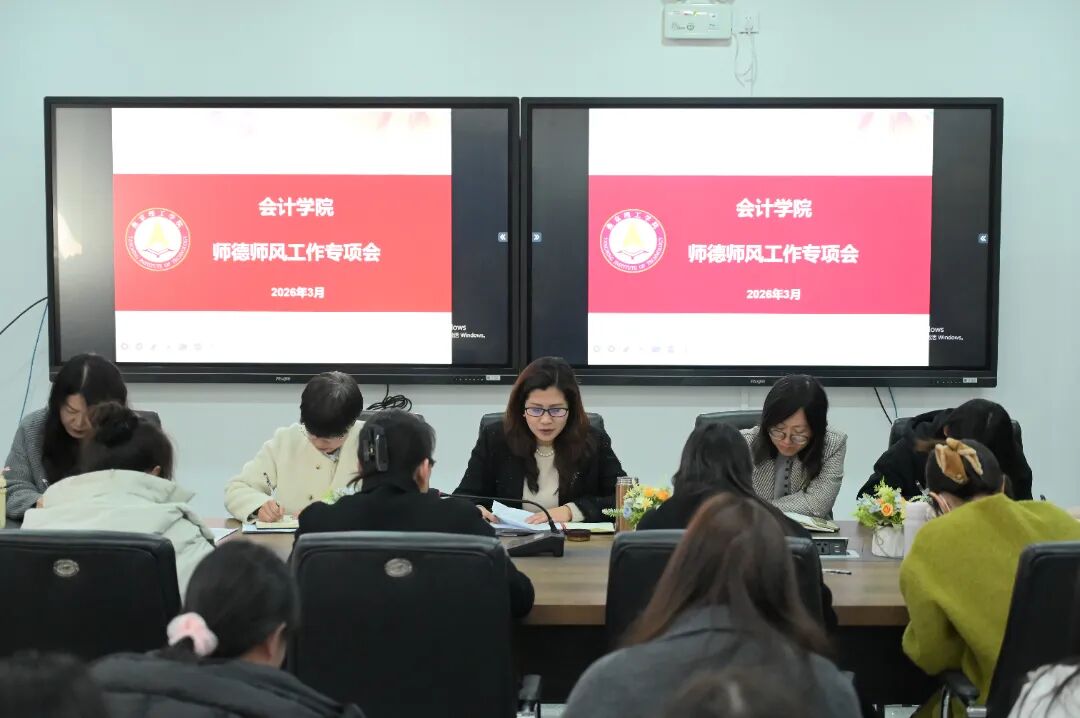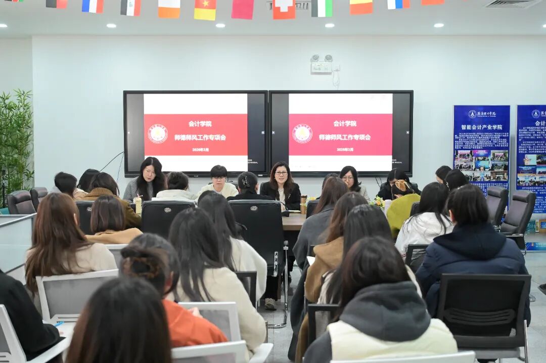 为深入贯彻新时代教师队伍建设要求,筑牢立德树人根基,3月18日,会计学院在财经产业学院召开师德师风建设工作专项会。本次会议由会计学院院长杨良教授主持,学院全体教职工参会。 杨良院长主持 会上,杨良院长强调,师德师风是评价教师队伍素质的第一标准,作为教师,我们既要当好专业知识的“授业者”,更要成为学生职业操守的“引路人”。她指出,会计行业诚信为本、操守为重,教师的一言一行、一举一动,都在潜移默化影响着未来会计人才的职业品格与价值追求。 杨良院长讲话 杨良院长表示,学院将始终以“四有”好老师为标杆,进一步健全师德考核评价机制,坚决把师德表现作为职称评聘、评优评先、岗位聘用的首要指标,坚持正面引导与严肃惩戒相结合,对师德失范行为“零容忍”,绝不姑息迁就。 最后,杨良院长作总结讲话并发出号召:希望全体教师坚守教育初心,牢记育人使命,坚持以德立身、以德立学、以德施教,把教书育人与立德树人相统一,把言传与身教相结合,争做学生为学、为事、为人的示范,当好学生成长路上的筑梦人。 会议现场 此次专项会进一步统一思想、明确任务、压实责任,为会计学院师德师风建设的深入推进注入了强劲动力。未来,学院将持续完善师德建设长效机制,强化榜样引领与底线约束,着力打造高素质专业化教师队伍,为培养坚守诚信底线、堪当民族复兴大任的财会人才贡献力量。 文/注会2404 郭钰涵 注会2504 刘子旭 审核/数会2511 杨忆轩