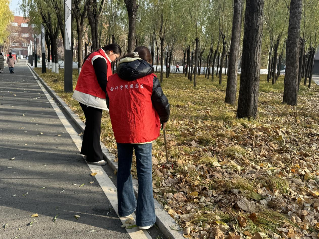 园环境,营造整洁优雅、舒适宜人的育人氛围,会计学院团总支于11月23日组织学生开展“青春聚力·净美校园”志愿清扫活动。此次活动以劳动履行责任,用合作汇聚力量,不仅推动同学们树立环保意识,养成文明卫生习惯,还磨炼担当精神、增强集体观念,用实际行动传递奉献互助的青春正能,全面展现学子的责任担当,凸显新时代青年的蓬勃风采与青春本色。 活动参与人员大合照 活动伊始,负责人首先向全体志愿者细致讲解本次清扫活动的整体规划、区域分工及安全注意事项,明确清洁标准与工作要求,确保活动有序高效推进。 活动现场 志愿者们迅速分组到位,有序开展志愿清扫工作。活动现场,会计学院学子秉持“共治校园环境、共建美丽家园”理念,践行“爱护环境,始于足下”宗旨,齐心协力投身清洁工作,以实际行动为打造整洁优美的校园环境贡献青春力量。大家怀着高度责任心,细致捡拾散落垃圾、清扫路面落叶,认真对各类垃圾进行分类整理,严格按规定送至指定回收地点,让校园环境愈发清新雅致、整洁舒心。 活动现场 此次“青春聚力·净美校园”志愿清扫活动圆满结束,不仅全面清理校园卫生死角,让道路整洁,环境卫生面貌焕然一新,更在实践中充分彰显会计学院学子的劳动担当与青春风采。同学们以汗水践行奉献初心,用行动诠释文明使命,在协作中凝聚团队力量,在劳动中深化环保认知,进一步强化集体凝聚力与环保自觉,切实推动形成爱护校园、共建文明的良好氛围,为建设洁净优美、文明和谐的校园注入蓬勃青春动能。 文/会计学院团总支 审核/数会2511 郑钰格