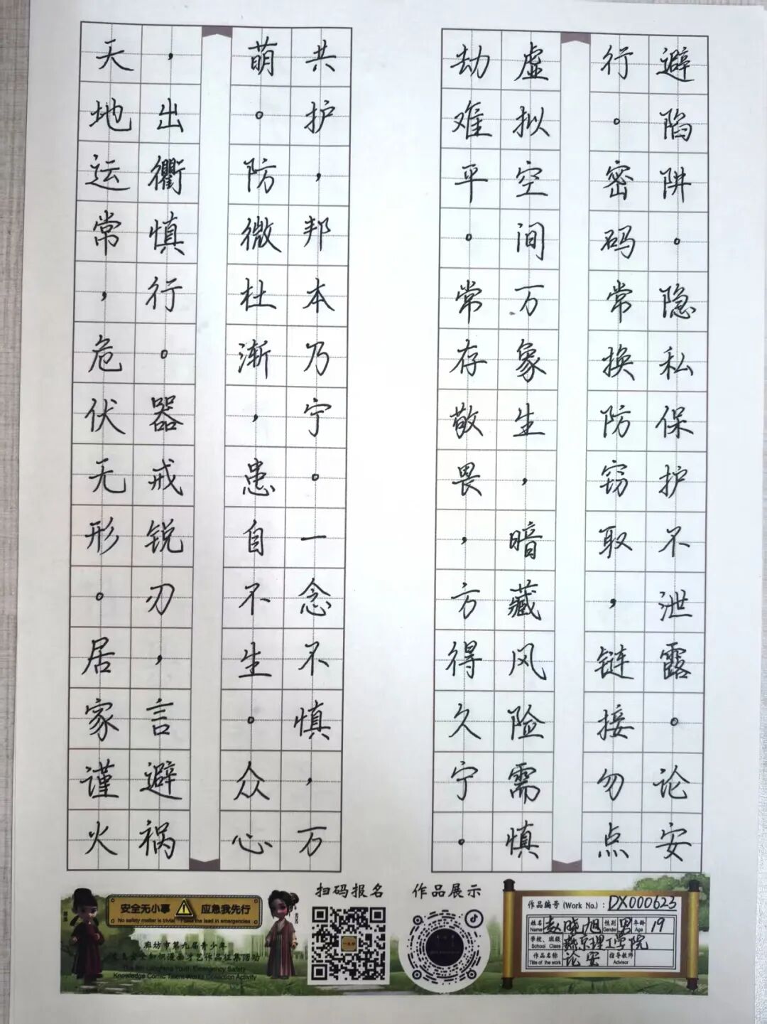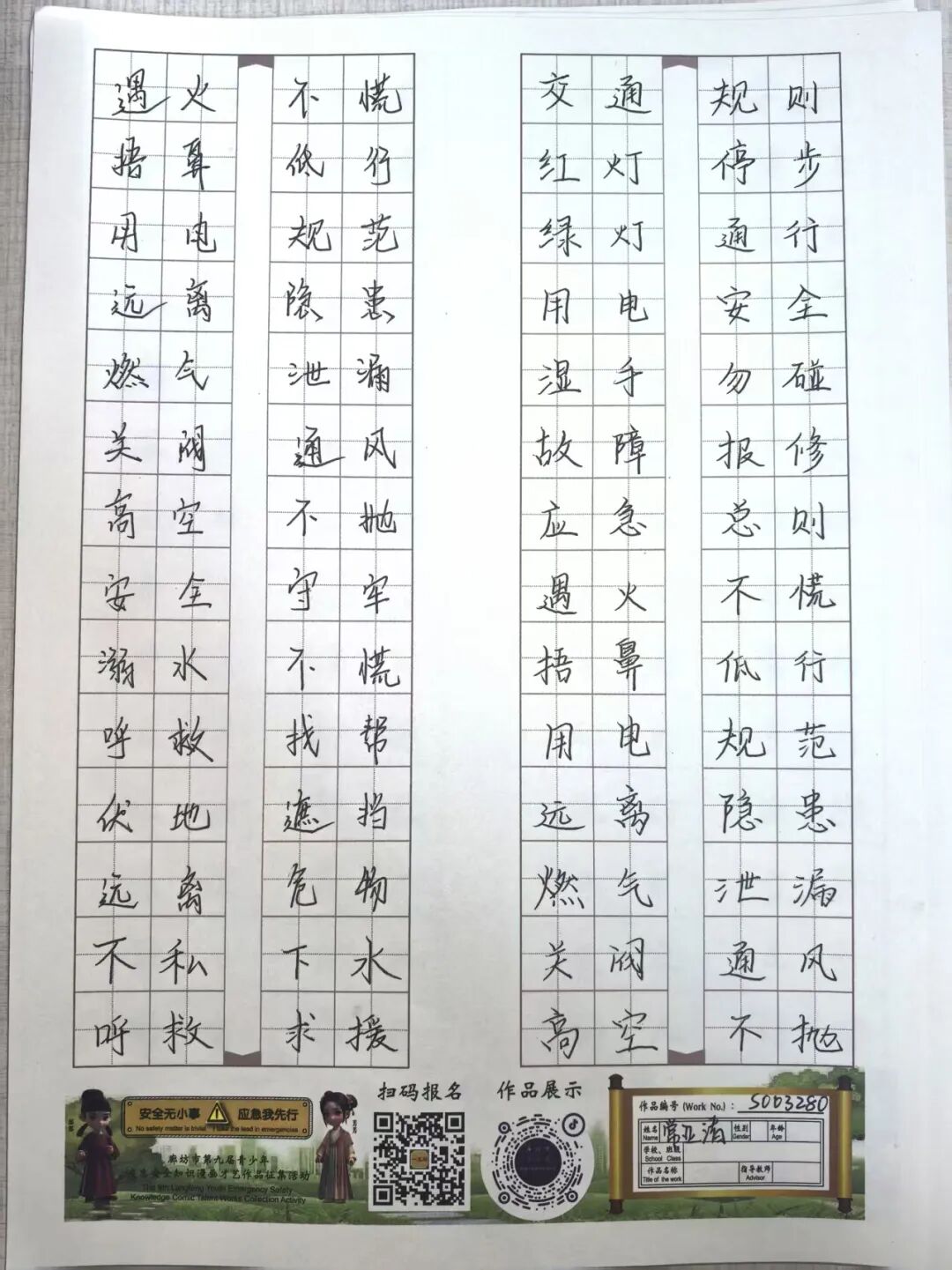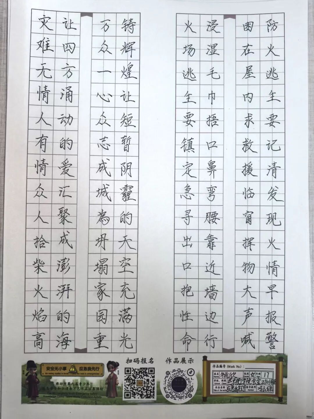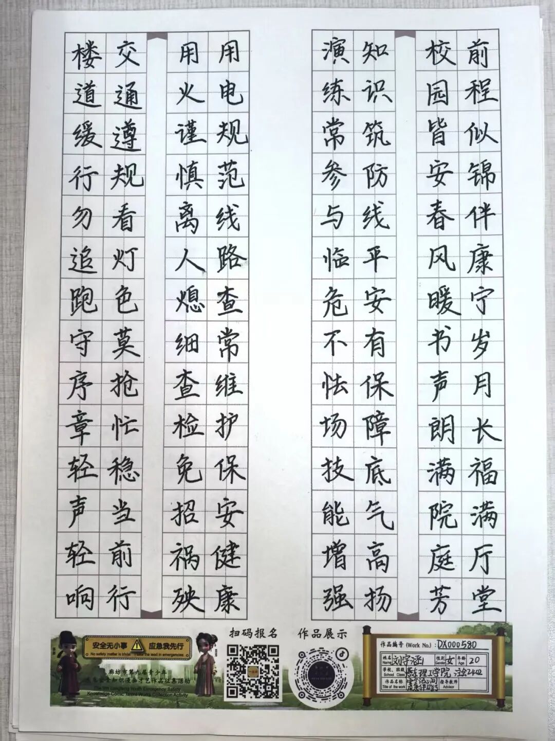 “安全无小事,应急我先行”,这并非仅仅是一句口号,更是一种对生命负责的态度,一份守护安全的行动指引。为深入贯彻党的二十大和二十届三中全会精神,认真学习习近平总书记关于应急管理的重要论述和重要指示批示,会计学院团总支积极响应“廊坊市第九届青少年应急安全知识漫画才艺作品征集活动”的号召,现开展漫画才艺作品征集活动。 在应急安全知识的创意表达中,漫画以其生动的视觉语言成为独特载体。经过团总支对作品主题契合度、艺术表现力与传播感染力的综合考量,一批兼具教育意义与创作巧思的漫画佳作脱颖而出,它们将抽象的安全准则转化为鲜活的画面叙事,让应急避险的要点在笔尖流转中变得直观易懂,深入人心。 优秀作品展示:漫画 漫画以图像勾勒安全轮廓,书法则用笔墨传递安全信念。参赛青少年从笔锋提按转折到章法疏密布局,以横竖撇捺为媒介,将应急安全警示与守护温度融入汉字,让刚劲或秀逸的字迹注解安全理念。下面,让我们一同走进这些墨韵飘香的书法作品世界。 优秀作品展示:书法 欣赏过以图像勾勒安全轮廓的漫画,品鉴过借笔墨传递安全信念的书法,文字的力量同样不可忽视。在作文里,创作者以笔为桥梁,编织应急安全故事,有的讲述避险经历,使读者感同身受;有的阐释安全理念,传递守护温情。接下来,让我们一同走进这些以文字筑牢安全防线的作文,聆听关于安全的话语。 优秀作品展示:作文 会计学院团总支的应急安全知识作品征集活动已顺利完成。此次活动有效打破了应急安全知识“专业壁垒”,以“普及应急技能,筑牢安全防线”为核心,让原本抽象的火灾逃生、触电急救、地震避险等知识变得直观易懂。不仅激发了同学们主动学习安全知识的热情,更促使大家将所学转化为实际行动,在校园内营造出“人人讲安全、事事为安全”的良好氛围,切实提升了全体学生的应急安全素养与自我保护能力。 文/会计学院团总支 审核/数会2506 武嘉昕