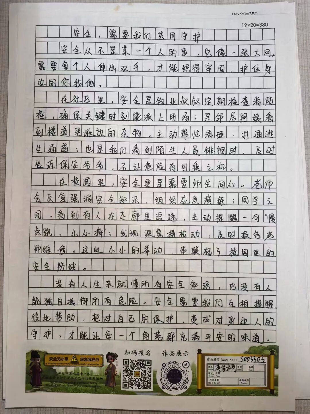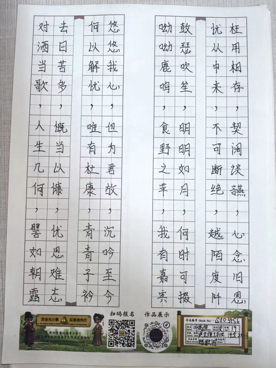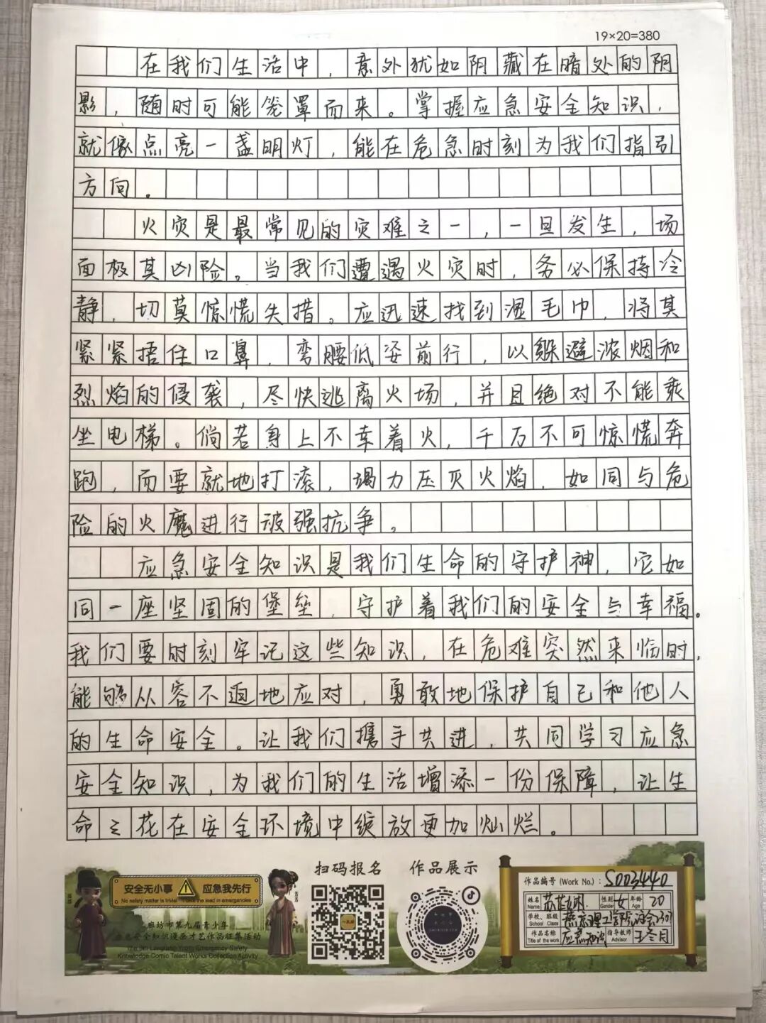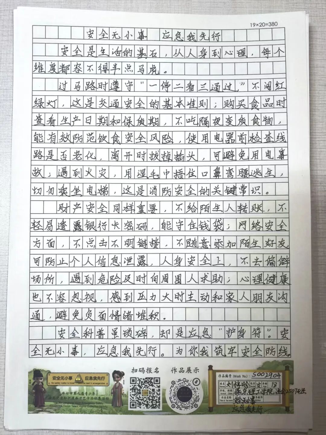 “安全无小事,应急我先行”,这并非仅仅是一句口号,更是一种对生命负责的态度,一份守护安全的行动指引。为深入贯彻党的二十大和二十届三中全会精神,认真学习习近平总书记关于应急管理的重要论述和重要指示批示,会计学院团总支积极响应“廊坊市第九届青少年应急安全知识漫画才艺作品征集活动”的号召,现开展漫画才艺作品征集活动。 在应急安全知识的创意表达中,漫画以其生动的视觉语言成为独特载体。经过团总支对作品主题契合度、艺术表现力与传播感染力的综合考量,一批兼具教育意义与创作巧思的漫画佳作脱颖而出,它们将抽象的安全准则转化为鲜活的画面叙事,让应急避险的要点在笔尖流转中变得直观易懂,深入人心。 优秀作品展示:漫画 漫画以图像勾勒安全轮廓,书法则用笔墨传递安全信念。参赛青少年从笔锋提按转折到章法疏密布局,以横竖撇捺为媒介,将应急安全警示与守护温度融入汉字,让刚劲或秀逸的字迹注解安全理念。下面,让我们一同走进这些墨韵飘香的书法作品世界。 优秀作品展示:书法 欣赏过以图像勾勒安全轮廓的漫画,品鉴过借笔墨传递安全信念的书法,文字的力量同样不可忽视。在作文里,创作者以笔为桥梁,编织应急安全故事,有的讲述避险经历,使读者感同身受;有的阐释安全理念,传递守护温情。接下来,让我们一同走进这些以文字筑牢安全防线的作文,聆听关于安全的话语。 优秀作品展示:作文 会计学院团总支的应急安全知识作品征集活动已顺利完成。此次活动有效打破了应急安全知识“专业壁垒”,以“普及应急技能,筑牢安全防线”为核心,让原本抽象的火灾逃生、触电急救、地震避险等知识变得直观易懂。不仅激发了同学们主动学习安全知识的热情,更促使大家将所学转化为实际行动,在校园内营造出“人人讲安全、事事为安全”的良好氛围,切实提升了全体学生的应急安全素养与自我保护能力。 文/会计学院团总支 审核/数会2506 武嘉昕