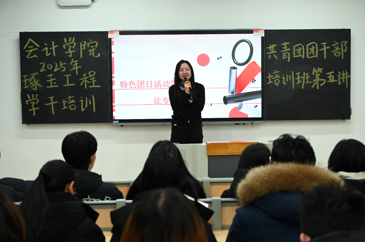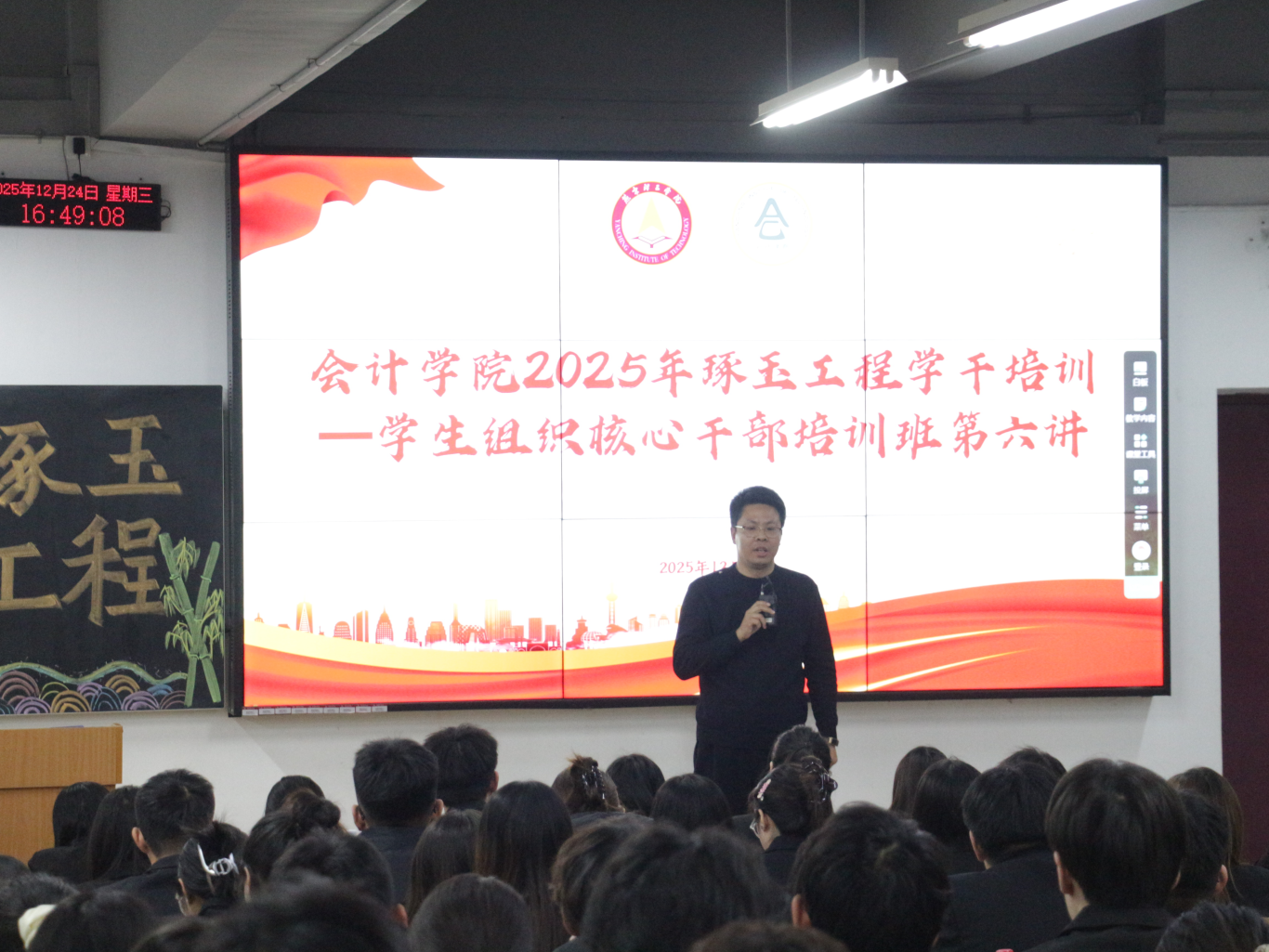 为扎实推进“琢玉工程”学生干部培养体系,切实提升学生干部履职能力与综合素养,会计学院紧密围绕学生工作实际,开展“琢玉工程”学生干部培训班共青团团干部第五讲和学生组织核心干部第六讲。通过聚焦问题、贴近实战的讲解与指导,搭建起系统赋能、精准提升的成长平台,有力推动学院学生工作向精细化、高质量迈进,为打造一支务实担当、能力过硬的学生骨干队伍奠定坚实基础。 胡国超书记主讲 2025年会计学院“琢玉工程”学干培训学生组织核心干部培训班第六讲顺利开讲,由胡国超书记担任主讲人。课程由“燕理的会计人”的身份认同深入展开,他指出无论身处哪个年级,大家都是会计学院的一份子。他引导学生干部明确组织由来的前提原因,深刻理解学生组织设立的初衷、目的与职责分工,并着重指出各学生组织应该加强沟通协作,应通过“明确位置、打开格局、提高站位”,进一步筑牢思想根基,凝聚“人人知责、人人尽责”的团队共识,为会计学院各项工作的推进与完善齐心聚力,为广大会计学子的校园生活保驾护航。最后,胡书记重申了“德智体美劳”全面发展的重要性,并由衷祝愿各位学员在接下来的期末考试中积极应考,取得优异成绩。 王珊老师主讲 2025年“琢玉工程”学生组织共青团团干部培训班第五讲顺利开讲,主讲人王珊老师以“特殊团日活动策划:让专业发光”为主题,开始授课。课程体系层层递进、兼具理论与实操:先以“特色为何是生命线”破题,点明团日活动特色打造的核心意义;再通过标杆案例拆解为团干部提供经验借鉴,传授从需求到资源的四步策划法,搭建起团日活动策划的基础逻辑;随后详解破圈形式设计与全流程落地攻略,从前期筹备、组织执行到收官复盘,构建起团日活动全流程工作框架。课程还设置实战演练环节,对团干部的活动方案现场诊断与升级,最后以行动倡议和课程总结收尾,夯实了团干部团日活动策划的方法论,有效提升其组织协调与实践育人能力,为后续打造有特色、易传播、能落地的团日活动提供了有力指导。 会议现场 至此,会计学院“琢玉工程”学干培训课程圆满结束。本次系列课程的开展,不仅让学子们在针对性技能指导中锤炼本领、积累经验,更在深层次思想引领中感悟责任、明确担当。未来,学院学生干部将把培训所学所思转化为实际行动,以更坚定的担当、更务实的作风投身工作,将“琢己为器、怀才为玉”的追求融入学风建设与人才培养的每一步,用专业能力服务同学,以开阔格局助力学院发展,为会计学院的建设注入蓬勃生机与盎然活力,在服务与奉献中绽放青春光彩。 文/会计学院团总支 审核/政审2502 刘志欣