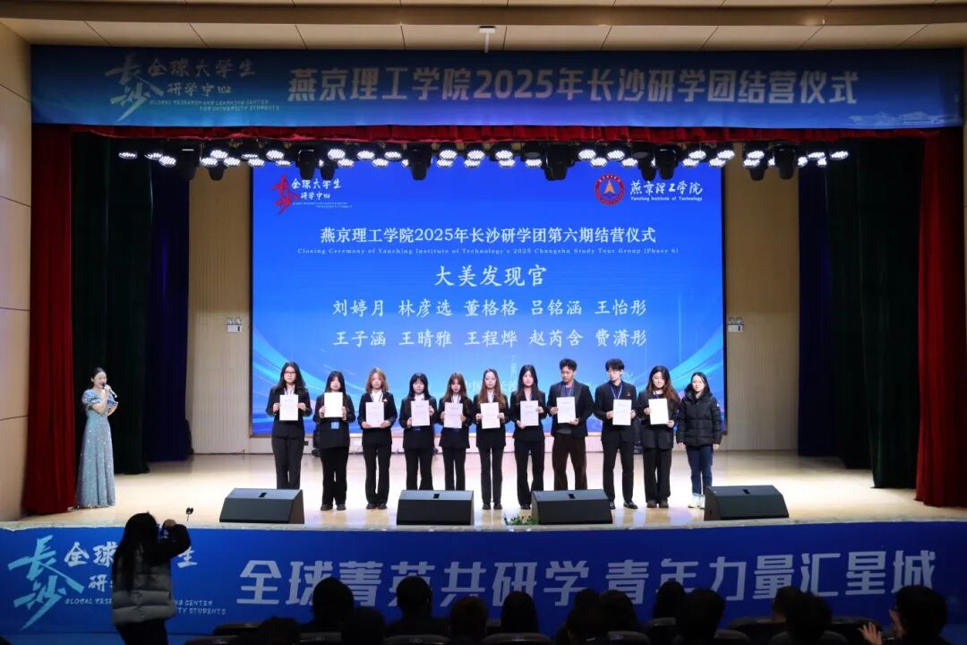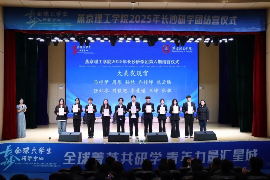 为推动产学研用深度融合、拓展学生实践创新视野,燕京理工学院联合长沙全球大学生研学中心开展的第六期长沙研学活动,于12月15日上午10:30在学术报告厅举行结营仪式。本次仪式由李思思主持,燕京理工学院智能工程学院党总支书记冯荣普,以及长沙全球大学生研学中心执行主任易旸等嘉宾出席,研学团全体师生共同参与,为本期研学之旅画上圆满句号。 PART.01 伴随着燕京理工学院学子演唱的《迎着光的方向》,激昂旋律奏响青春乐章,结营仪式正式拉开帷幕。现场播放的研学回顾视频,生动再现了这段充实而难忘的旅程:走进湖南广电探索传媒行业前沿动态,驻足岳麓书院浸润千年文脉书香,漫步橘子洲头激荡青春理想情怀,沉浸《最忆韶山冲》接受红色精神洗礼,每一处足迹都承载着探索的热情,每一段经历都凝聚着成长的力量,深刻诠释了“知行合一”的育人初心。 PART.02 燕京理工学院智能工程学院党总支书记冯荣普在致辞中,对本期研学活动的圆满举办给予高度评价。她强调,研学实践是课堂教学的重要延伸,是连接理论与现实的关键纽带,希望学子们将研学中的所见所闻沉淀为认知养分,将所学所思转化为奋进动力,在实践磨砺中锤炼过硬本领、增长综合素质。 PART.03 长沙全球大学生研学中心执行主任易旸宣读优秀志愿者、优秀学员及优秀团队的表彰名单。与会嘉宾依次为获奖代表颁发荣誉证书,掌声中满含对学子们实践成果的肯定与期许。“大美发现官”作品展示环节精彩纷呈,学子们以镜头定格长沙风貌、以笔墨抒发研学感悟、以视频串联难忘瞬间,多元形式的作品既展现了城市的人文底蕴与自然之美,也彰显了燕理学子的观察视角与创新思维。 PART.04 优秀学员代表尹雨梦分享了自己的研学收获:从实地考察中的知识拓展,到团队协作中的沟通成长,每一次探索都让她对理论知识有了更深刻的理解,每一次协作都让她收获了珍贵的同窗情谊。优秀团队指导老师高小芳从育人视角出发,深入阐释了研学活动在应用型人才培养中的独特价值。她谈到,研学实践搭建起理论与实践深度融合的坚实桥梁,让学子在知行合一的历练中实现知识沉淀与能力提升。仪式尾声,全体与会人员共同合影留念,用镜头定格下这段满载收获与成长的研学记忆。 此次长沙研学活动,不仅为燕京理工学院学子搭建了走出校园、接触社会的实践平台,更深化了校地协同育人机制,让理论学习在实地体验中落地生根。未来,燕京理工学院将持续探索实践育人新路径,依托更多元的实践载体,为学子们提供广阔的成长舞台,助力青年学子在实践中增长才干、在探索中成就梦想,为培养高素质应用型创新人才持续赋能。 文/会计学院 审核/政审2502 刘志欣