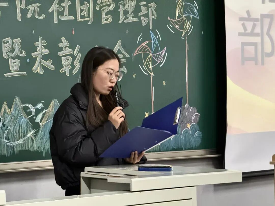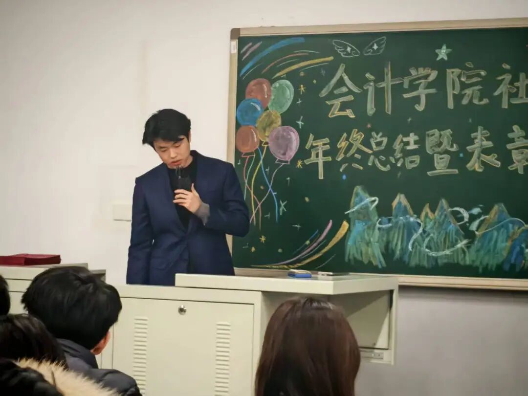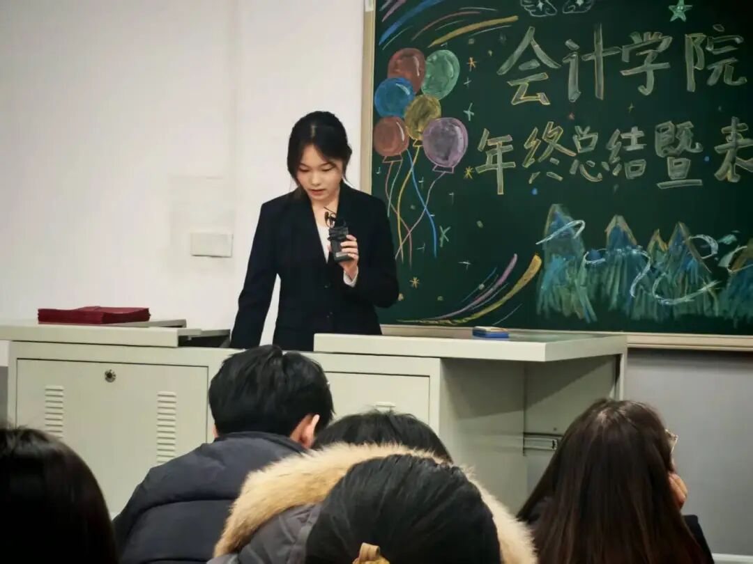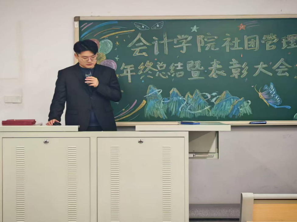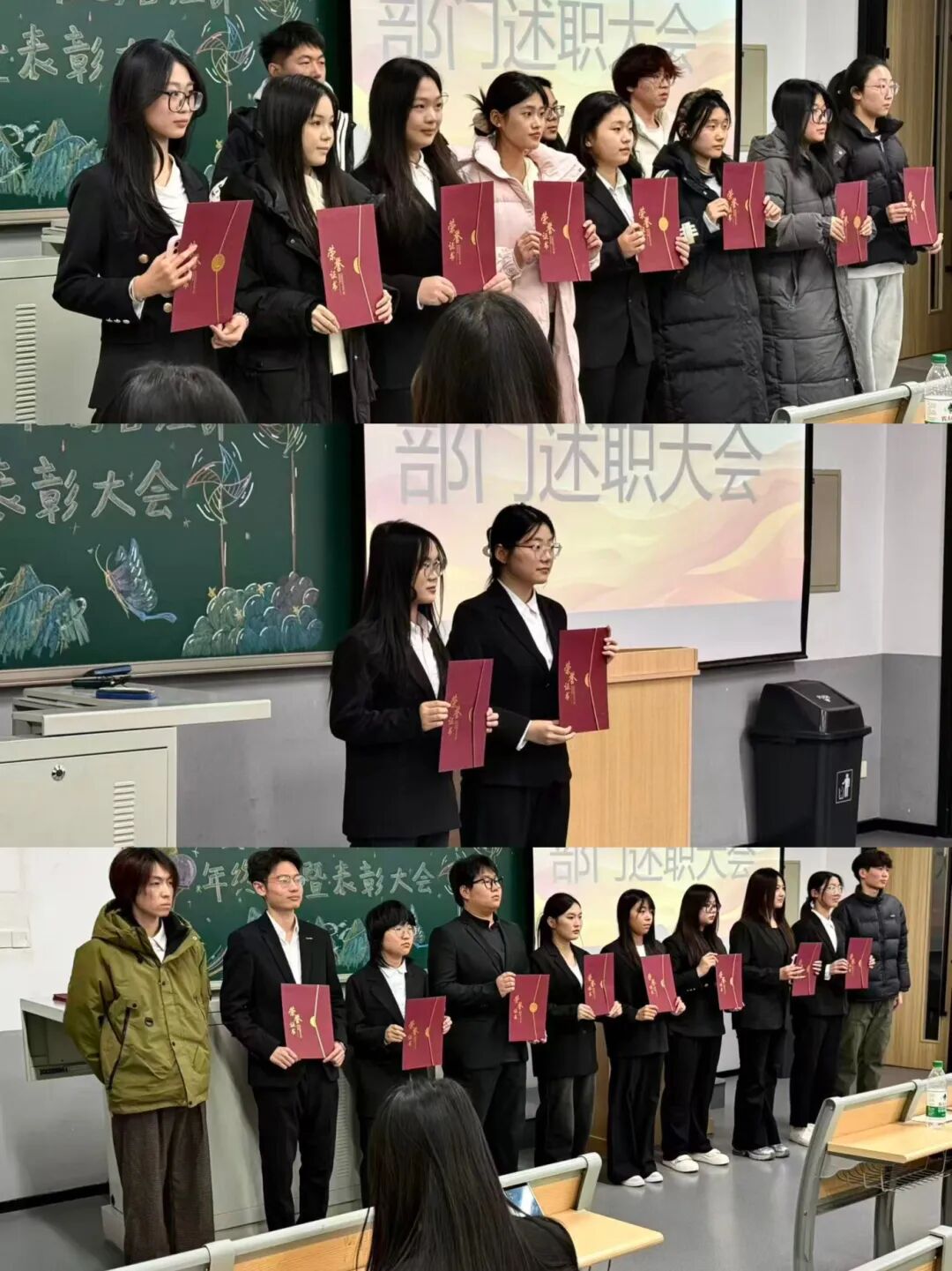 述职亮绩谋新篇 凝心聚力启新程 时光镌刻奋斗足迹,实干书写年度答卷。2025年12月23日晚上七点,会计学院社团管理部于C405教室开展年终总结暨表彰大会。学院指导老师及学生骨干齐聚一堂,共话成长、共商发展。本次大会总结了阶段性工作成果,反思工作中的不足,明晰下一阶段奋斗方向,并为优秀部长、部门及干事颁发了荣誉。这场兼具工作总结与青春交流的盛会,也将为社团管理部的新征程写下序章。 主持人开场发言简述述职流程 大会开始,指导老师刘嘉睿对本年度工作成果进行总结,梳理工作历程中的经验与不足,提出反思与学习方向。对各部门进行寄语,强调要以卓越的表现、创新的精神和强烈的责任感推进后续工作,为社团管理部的发展指明了路径。 指导老师发言并总结工作 随后主席团代表李茗钰进行年终总结,充分肯定各部门的工作完成情况,同时针对现存不足提出改进建议,并对未来发展规划做出指导,为部门工作的优化升级筑牢根基。 主席总结并明确未来工作方向 紧接着是各部门部长对该阶段工作进行述职。各部门部长结合学校校园文化建设要求,规划会计学院社团的整体发展方向。有序举办了各种活动,如社团述职大会、换届、校园海棠文化节等相关活动,指导学院社团活动的策划与开展,如社团嘉年华等,积极把控活动流程、安全与质量。监督各社团的日常运营,核查社团活动审批材料、经费使用情况,规范社团行为,对违规社团提出整改意见并跟进落实。加强对部门干事的选拔、提升干事的业务能力与责任意识。关注干事的成长与发展,为部门储备后备干部,打造高效协作、积极向上的团队氛围。 部长述职 强化部门职能 紧接着各部门干事代表对各自部门的工作进行了汇报。在本学期的工作中,各部门始终秉持着“服务社团、规范管理、助力校园文化建设”的宗旨,积极完成各项工作安排,认真履行职责,恪尽职守,扎实完成各项工作任务。协助落实学校社团管理的各项规章制度以及运行。 干事述职 展示部门风采 最后是激动人心的表彰环节,各部长,部门,干事以耐心与责任获得表彰。他们从前期筹备到后期收尾,部门里的每一个环节都有人认真把控,这份对工作负责、对集体负责的态度都得到成员们的肯定。一张张荣誉证书,既是对过往付出的肯定,更是对未来前行的激励。 优秀部长 部门 干事获奖合照 此次述职暨表彰大会,不仅全面展示了社团管理部的工作成果、深刻反思了现存问题,更明晰了未来发展方向。道阻且长,行则将至;行而不辍,未来可期。过往的成绩是全体成员共同奋斗的勋章,未来的挑战更需携手并肩。会计学院社团管理部将以青春之名,赴实干之约,在新征程中坚守初心,继续书写属于社团管理的崭新篇章。 合影留念 记录美好时光 文/会计学院社团管理部 审核/注会2505 陈芊彤