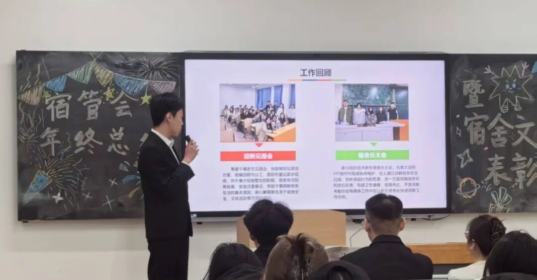 2025年12月26日,宿管会年度总结暨宿舍文化节表彰大会如期举行。这场以“初心如磐,奋楫扬帆”为主题的盛会,不仅回顾了一年来的耕耘与收获,更见证了责任与热爱。 表彰大会现场 大会伊始,宿管会主席王嘉悦率先带来年度工作总结,全面梳理了过去一年在宿舍管理、文化建设等方面的重点工作与成效,清晰勾勒出宿管会为打造温馨和谐宿舍环境所付出的努力。 宿管会主席王嘉悦总结 随后,朱佳恒、赵阳、胡嘉洁、刘政毅、云苹博五位部长依次进行部门工作汇报,分享各部门在协作中的点滴付出与成长感悟。 各部门工作汇报 最受瞩目的表彰环节,见证了众多优秀个人与集体的荣耀时刻。为表彰先进、树立榜样,经民主评选与综合考量我们评选出了本年度优秀干事、优秀部长、宿舍管理先进个人、以及宿舍文化节一二三等奖。(1)优秀干事以日常工作绩效为核心依据,综合考量履职成效与任务完成质量;同时结合部门核心成员的推荐意见,全面参考工作中的担当表现、协作能力与成长潜力,推选出优秀干事。 优秀干事表彰 (2)优秀部长赵阳、云苹博在职期间,不仅高效统筹部门日常工作,精准落实各项任务,更用心凝聚团队力量,带领干事们在宿舍管理、文化建设等工作中屡创佳绩。荣获优秀部长。 优秀部长表彰 (3)宿舍管理先进个人有一种担当,藏在日复一日的坚守里;有一种责任,融于细致入微的服务中。朱佳恒、胡嘉洁、刘政毅三位同学,以宿舍为岗,以同学为先,用脚步丈量每一条楼道,用耐心化解每一个难题。 宿舍管理先进个人表彰 (4)宿舍文化节前三名活动紧扣“净环境、养习惯、凝舍情”目标,兼顾宿舍日常真实状态与长期习惯养成,宿管会根据“线上创意展示 + 线下突击核查”双轨并行,进行宿舍文化节评选,拒绝形式化应付,确保结果真实。 宿舍文化节前三名表彰 最后,指导老师刘嘉睿老师为大会作总结致辞,既肯定了宿管会全体成员一年来的辛勤付出与显著成果,也对未来的工作提出了殷切期望与明确方向。 刘嘉睿老师作大会总结 初心不改,未来可期。此次大会不仅是对过去一年工作的圆满收官,更为新一年的征程吹响了奋进的号角。宿管会将继续秉持初心,砥砺前行,为打造更舒适、更和谐、更有温度的宿舍环境而不懈努力! 表彰大会结束 文/会计学院团总支 审核/数会2506 方雨含