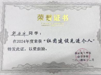 为发扬先进、树立典型,进一步加强团的建设,增强共青团员组织的凝聚力和战斗力,充分发挥共青团组织自身的优势,调动广大团员青年的积极性,更好地践行社会主义核心价值观,引导广大团员青年不懈奋斗。会计学院各团支部积极参与2025年度活力团支部选树活动,他们紧扣“思想、学风、服务、活动”四大核心发力,用扎实行动诠释青春担当,亮点纷呈。他们展现出了朝气蓬勃的青春模样,彰显了活力团支部的风采. 接下来,就让我们一同走进这些活力团支部,亲身感受那份扑面而来的蓬勃朝气与青春力量! 01注会2304团支部 注会2023级4班团支部由24名同学组成,其中团员人数比例超过50%。该班及团支部成员积极投身于学校与学院的各项事务,以高度的责任感与使命感,在不同岗位履行职责。正因为有如此积极向上的班风和拼搏努力的同学们,该班及团支部才取得了许多班级荣誉。获得了“优秀团支部”“活力团支部”称号,2023-2024年度获得校级红旗班集体。2024-2025年获得“五四红旗团支部”称号。 班级合照 思想是行动的先导,在思想建设的征程中,该该班积极开展丰富且具有内涵的主题团日活动,在祖国七十五周年华诞之日共同合唱该爱你中国为祖国庆生。此外还开展了 “入党推优大会”等活动,在思想建设下,该班同学积极向党组织靠拢,共发展四名入党积极分子,两名新发展团员。这些活动让该们深刻领悟到新时代青年的责任与担当,更加坚定了该们听党话、跟党走的决心。 照片展示 青年是学习的黄金时期,大学生最重要的任务就是学习。该团支部奋勇争先,大一注会2304班全年无补考无挂科同学,大二学年各学科通过率超95%。截至大二学年,3名同学获国家励志奖学金,12名同学获校级奖学金,不仅如此,班级同学积极提升个人素质,考取技能型证书。19名同学已成功获取初级会计证书,在四级考试中,该班更是有20名同学通过。此外还积极考取驾驶证 计算机二级 普通话 银行从业资格证等证书。且重视参与学科竞赛,积极参加各类优质比赛。这些成绩是个人的荣耀,更是整个团支部努力奋进的见证。 成果展示 实践出真知,实践长真才。注会2304班热爱公益,积极投身志愿服务和社会实践, 在校内班级中团支部成员积极参加学校的志愿活动,优秀学生代表获得联盟“公益之星”荣誉称号。在高铁站,献血车旁可见支部成员志愿服务身影,该班及团支部成员利用假期进行返家乡社会实践,扎根基层,获当地政府和人民认可。班级同学积极响应社会和学校公益实践号召,全员参加寒假社会公益实践活动。这些经历让该们收获奉献的快乐和成长。 照片展示 展望未来,注会2023级4班团支部将继续以五四精神为指引,提升团支部的凝聚力和战斗力,在学习和生活中发挥模范带头作用,激励更多青年为实现中国梦贡献力量。相信在团支部全体成员的共同努力下,必将在青春的赛道上跑出好成绩,书写绚烂的青春华章。 02智会2304班团支部 智会2304班团支部于2023年9月成立,共30人,其中共青团员12人,积极分子2人,班干部8人。团支部秉持“团结、进取、服务、创新”精神,在思想政治发展领域积极作为。该团支部推动班级与团支部深度融合将班委制度与班干部制度紧密结合,确保各项工作有序开展,让班团一体化建设规范且富有活力。 班级合照 支部积极投身于学习贯彻习近平新时代中国特色社会主义思想的伟大实践中。积极开展日常主题团日活动,如入团宣誓仪式,党史知识围读活动等,在活动过程中让伟大思想在心中生根发芽,紧跟党的步伐。在此良好基础上,青年大学习与学习强国完成率均100%,并高效有序的完成了4次推优会议,2次教育评议,完美的将伟大思想贯彻落实! 照片展示 智会2304团支部秉持“勤奋、求实”的学习态度。定期组织学习小组,开展学术交流活动,在学科竞赛斩获国家级奖项7项,省级9项、校级10项,还有校级奖学金4人次,院级奖项30人次。其中,在全国高等院校数智化企业经营沙盘大赛国赛获二等奖“学创杯”全国大学生创业综合模拟大赛省赛二等奖、学创杯财务决策省赛一等奖、全国大学生英语竞赛C类三等奖等赛事中表现亮眼。在专业学习方面,英语四六级通过率43%,初会通过率40%,计算机二级通过率17%,普通话通过率100%。支部成员互帮互学,形成良好学风。 照片展示 在社会实践方面,智会2304团支部积极响应组织青年参加各类志愿活动。30名同学将理论与实践相结合,共计参加13大类实践项目,累计信用时长2587余小时。开展“返家乡”、回访母校、研学二十大,寸草心爱老敬老等社会实践活动。该支部共计参加14类第二课堂活动,累计到梦空间568余学分。用实际行动诠释服务真谛,而一张张证书既是对付出的肯定,也是前行的动力。通过这些活动,让支部以实际行动诠释了自己的服务真谛。 照片展示 智会2304团支部30名同学积极参与学校一二九合唱、党史、绘画、海棠文化节、辩论赛、用英语讲故事等文体活动。除此之外,全员参加团支部风采大赛并斩获风采大赛复赛第一名。一张张奖状,宛如璀璨星辰,见证着他们的不懈热枕,每一份荣誉都是努力与坚持的最佳佐证!在赛场和舞台上,支部成员挥洒汗水,绽放才华,尽现青春活力与风采。 照片展示 经过两年的实践成长,智会2304班团支部在团总支的指导下,于各个领域尽显风采。未来,智会2304班团支部将成为组织