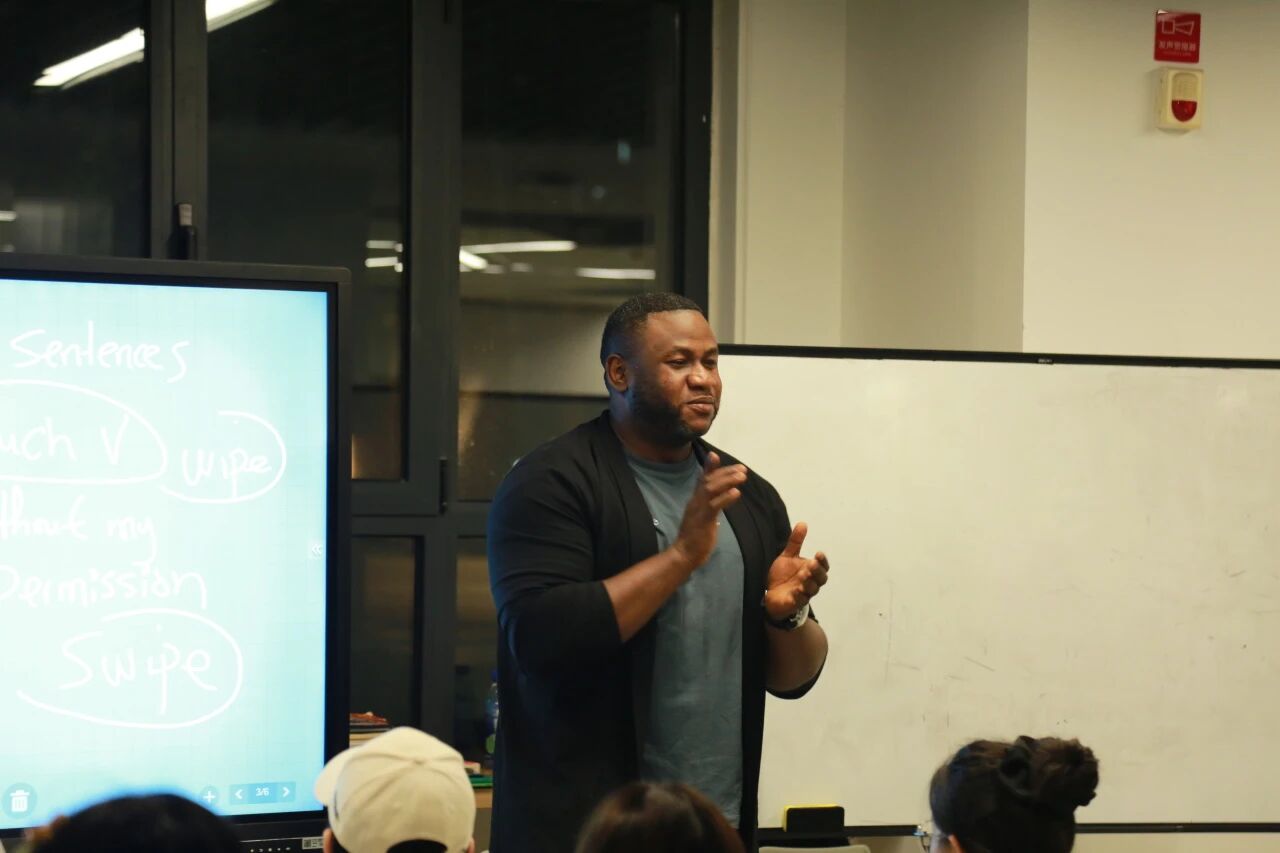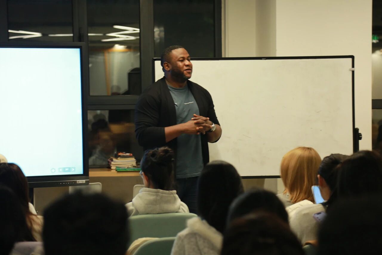 10月23日晚,国际教育学院25-26学年第一学期第4期英语角在国际学苑一层开展,本次活动由雅思讲师Lloyd Randall主讲,以“口语表达的情绪具象化与逻辑分层”为核心,通过互动练习实现场景化口语训练。 活动以Lloyd Randall的开场问句“Why are all the students here today?”拉开序幕,学生们围绕“冲刺雅思口语高分”“适应海外课堂交流”等诉求展开分享,快速营造出轻松的交流氛围。随后大屏展示出句式填空任务:“I find … annoying”“I think … is disgusting”“A personality I can’t stand is …”,Lloyd引导学生结合生活与学习场景补全内容——有学生进行了积极回应,既完成了情绪表达,又让回答贴合日常体验,避免了内容空洞。 核心训练环节,Lloyd紧扣雅思口语评分标准,强调“情绪词+具体细节”的表达逻辑:比如描述“反感的行为”时,不能仅说“It’s annoying”,而要补充“a roommate who stays up late talking loudly when I need to prepare for IELTS”,以此提升回答的丰富度与真实感。他还示范“观点+场景+感受”的三层答题结构,现场纠正了学生们“中式英语”的句式问题,补充了多个口语高频衔接短语。 本次英语角精准匹配雅思备考需求,将日常场景与口语训练深度结合,时态技巧与话题训练结合,有效提升了学生的表达细节与逻辑分层能力,持续助力学生的语言能力提升与海外升学准备,攻克雅思口语难点。 文/燕京理工学院国际教育学院 审核/注会2403 张馨予