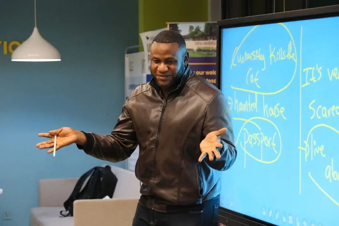 11月6日晚,国际教育学院海外深造25-26学年第一学期第6期英语角 (总第98期)在国际学苑一层开展。本次活动由雅思讲师Lloyd Randall主讲。 课程开篇,Lloyd 于大屏幕呈现互动句式 “If I could dress up for Halloween... I’ll dress up as...”,以富有想象空间的表达快速调动学生积极性,现场互动热情高涨。紧接着,他顺势引导学生围绕 “万圣节装扮” 主题拓展词汇,在学生的踊跃补充下,“pumpkin、Spiderman、nurse、zombie、monster、vampire” 等词汇逐步完整呈现于屏幕。该教学模式以趣味化形式完成新词汇的教学,同时深度融入万圣节多元文化元素,打破了词汇学习依赖列表记忆的刻板模式,有效强化了学生对词汇的场景化理解与实际运用能力。 紧接着进入雅思实用表达教学环节,Lloyd先在屏幕上清晰呈现“go back in time”“go over an obstacle”及核心词汇“obstacle”,既自然衔接了上节课的内容,也帮助大家温故知新;紧接着,又在白板写下例句“Her family is well off”,特意将“well off”标注为重点,并结合生活场景生动解释了该短语的含义,同时补充解析了“midas touch”这一实用表达,让词汇学习更具画面感与实用性,助力同学们在雅思语境中掌握技巧用法。 本次英语角在趣味与实用的双重节奏中落下帷幕:从万圣节主题的创意互动到雅思表达的精准教学,既让大家在文化氛围里解锁了语言的鲜活用法,也为雅思备考积累了实用素材。 文/燕京理工学院国际教育学院 审核/管会2502 李欣晨