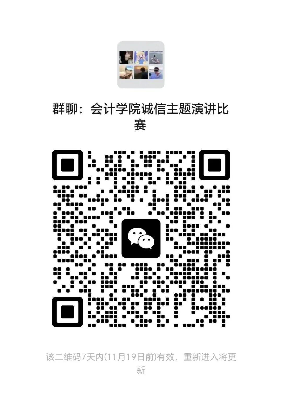 诚信是中华民族的传统美德,更是会计行业的立身之本、社会主义核心价值观的重要内核,关系着个人职业根基、行业健康生态与社会信用体系建设。为深入贯彻落实青年价值观培养的重要指示精神,结合会计专业“诚信为本、操守为重”的职业特性,会计学院团总支特以本次演讲比赛为载体,深化“诚信月”主题教育,引导学子在专业成长中筑牢诚信底色。 1. 报名时间:即日起—2025年11月19日 2. 参赛对象:全体在校学生 3. 比赛要求: ①围绕“以诚信铸魂,育会计英才”的主题进行文章创作,要将诚信与会计专业紧密结合,用个人经历或观察到的具体小事,阐述对诚信的理解,避免空泛议论,既有对诚信内涵的深刻解读,也有对会计职业诚信的实践思考,能够引发听众共鸣,让演讲更真实可感。 ②语言表达需使用标准普通话,发音清晰准确,语速节奏合理,情感饱满真挚,配合自然得体的肢体语言与表情管理,增强与观众的互动共鸣。 ③着装整洁得体,符合大学生精神风貌,避免穿着过于随意或夸张的服饰。 ④遵守赛场秩序,按时候场及配合流程安排。 4. 奖项设置:本次比赛设一等奖1名、二等奖2名、三等奖3名、优秀奖若干,进入决赛的选手均将获得荣誉证书及奖品。 5.报名方式:扫描下方二维码,进入群聊获得更多比赛信息。 本次比赛参与即有第二课堂积分,大家踊跃参加! 文/会计学院团总支 审核/数会2506 武嘉昕