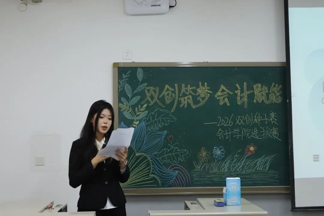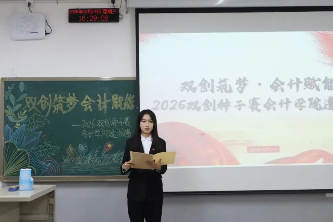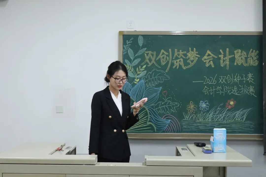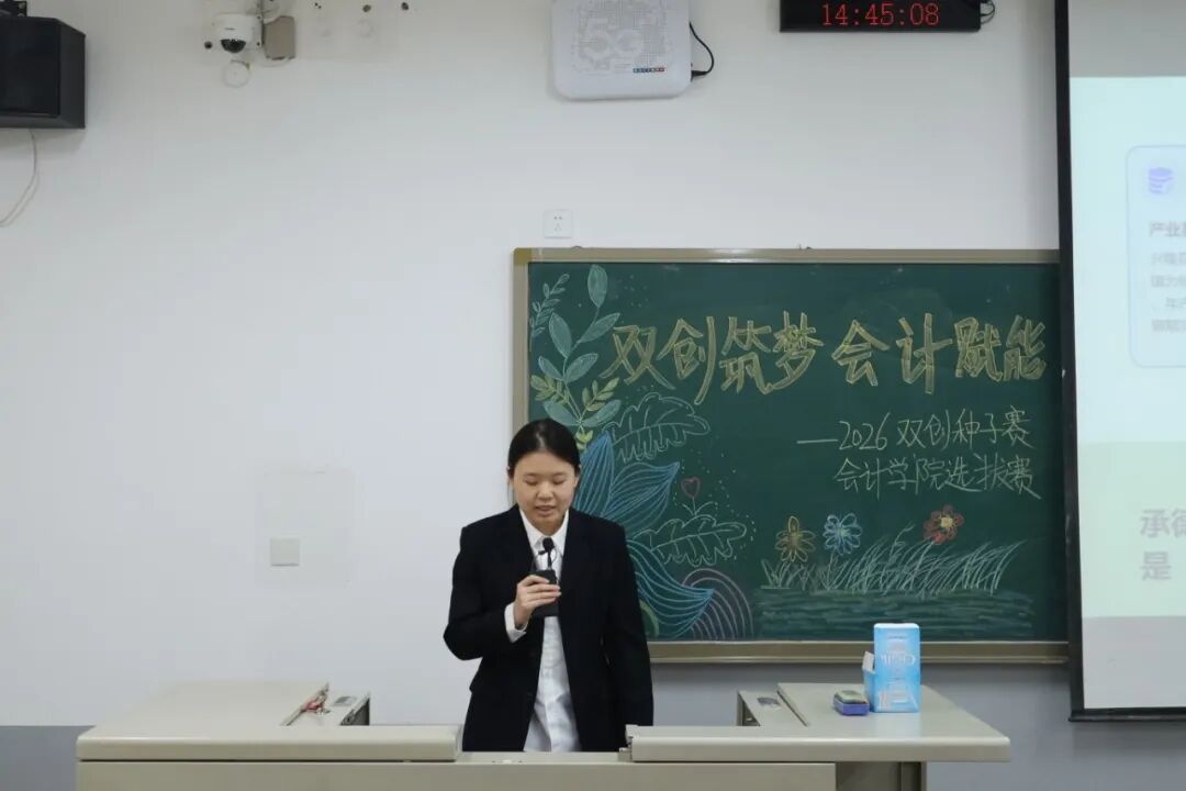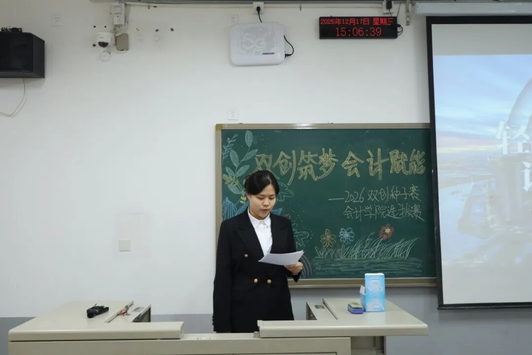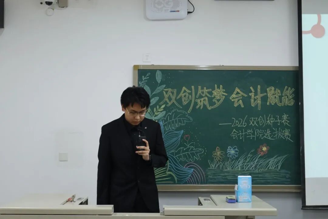 为践行“创新、协作、实用”的双创精神,进一步拓展学生创新能力和团队协作能力,激发青年学子的创新思维与创业活力,提升核心竞争力与时代担当,12月17日,2026双创种子赛会计学院选拔赛于教学楼M307举行。本次比赛由会计学院教师、辅导员代表担任评委,共有34支队伍参加。 活动现场 为践行“创新、协作、实用”的双创精神,进一步拓展学生创新能力和团队协作能力,激发青年学子的创新思维与创业活力,提升核心竞争力与时代担当,12月17日,2026双创种子赛会计学院选拔赛于教学楼M307举行。本次比赛由会计学院教师、辅导员代表担任评委,共有34支队伍参加。 活动现场 在点评环节中,评委们褒贬分明、精准施策。他们既肯定选手项目的创新亮点与团队的投入付出,又聚焦市场适配性、盈利模式、落地路径等核心问题,给出切实可行的优化建议。专业的指导不仅帮选手找准短项目汇报环节中,参赛团队负责人依次上台,通过PPT直观展示各自的创业成果。他们聚焦科技赋能、绿色发展、民生服务、文化交流等热门领域,结合扎实的专业知识与详实的市场调研数据,条理清晰地阐述项目的创意来源、核心商业模式、技术研发优势以及预期的社会价值,同时详细介绍了团队成员的协作分工、现阶段的推进成效和未来的阶段性执行规划。汇报过程中,评委针对项目的市场定位、盈利可持续性、落地难点等关键问题进行即兴提问,各团队沉着应对、应答流畅,充分展现出扎实的专业素养与良好的临场应变能力。选手们的精彩表现赢得了在场评委和观众的一致认可与阵阵掌声。此次双创种子赛初赛的成功举办,不仅为会计学院学子提供了一个展现创意、锤炼能力的广阔舞台,更是学校深化创新创业教育、落实人才培养目标的生动实践。它标志着会计学院在培育具备创新精神、创业能力和国际视野的新时代复合型人才道路上又取得了新的进展。相信未来,这些怀揣创业梦想的会计学子们,将为行业发展与社会进步注入源源不断的青年力量。 活动现场 文/注会2404 郭钰涵 数审2504 郭佳瑶 审核/管会2502 李欣晨