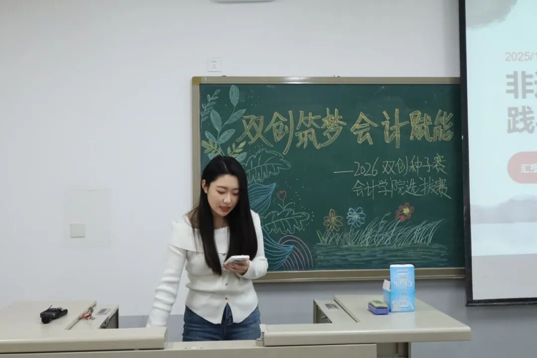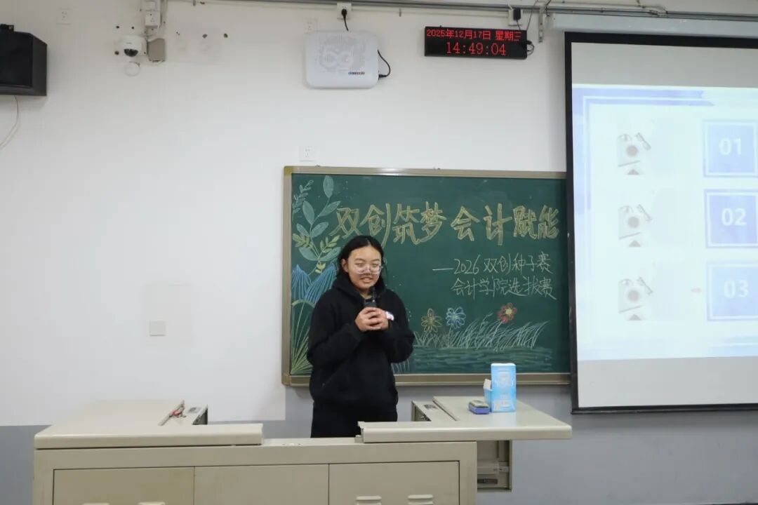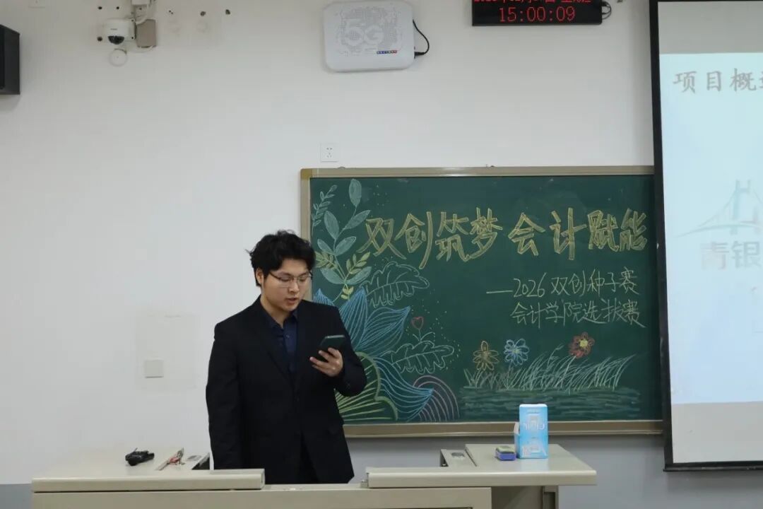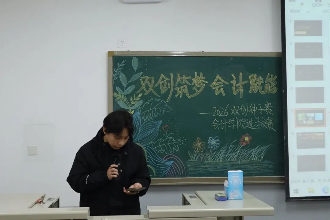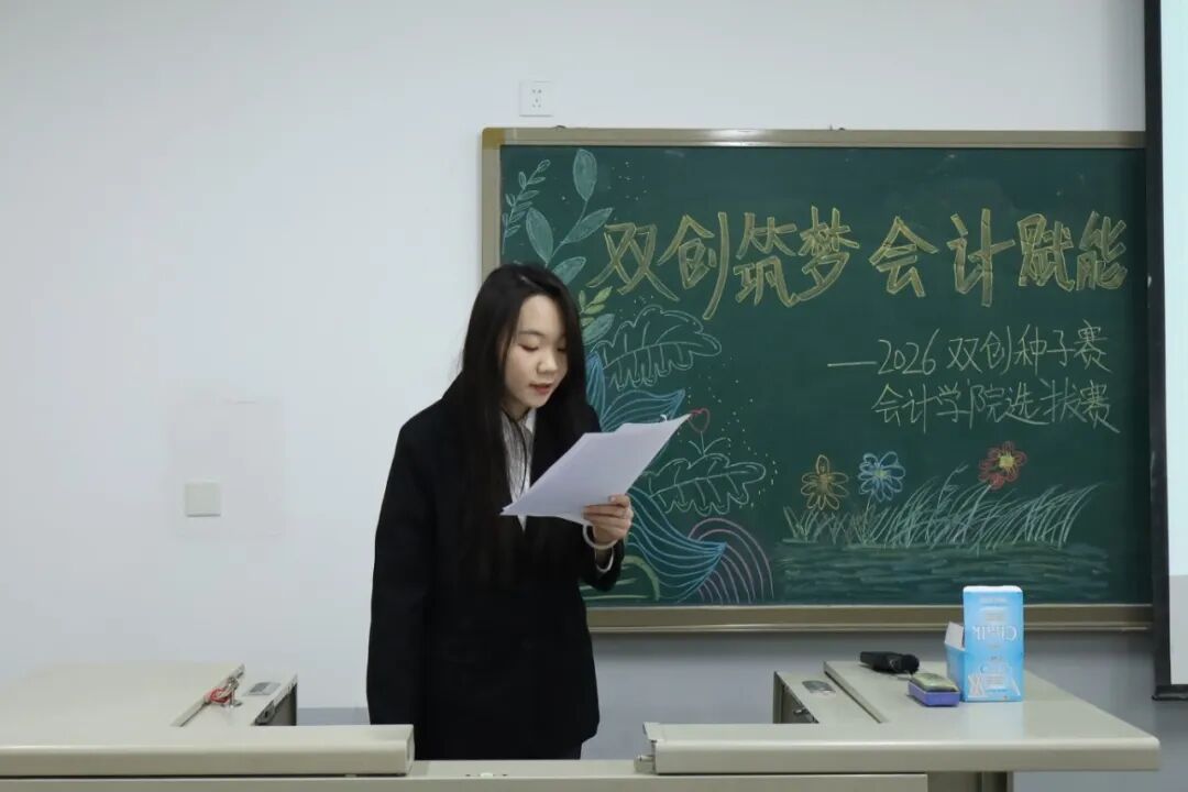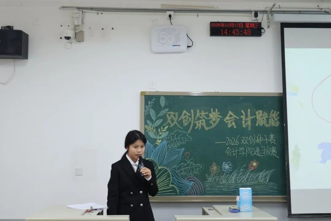 为践行“创新、协作、实用”的双创精神,进一步拓展学生创新能力和团队协作能力,激发青年学子的创新思维与创业活力,提升核心竞争力与时代担当,12月17日,2026双创种子赛会计学院选拔赛于教学楼M307举行。本次比赛由会计学院教师、辅导员代表担任评委,共有34支队伍参加。 活动现场 为践行“创新、协作、实用”的双创精神,进一步拓展学生创新能力和团队协作能力,激发青年学子的创新思维与创业活力,提升核心竞争力与时代担当,12月17日,2026双创种子赛会计学院选拔赛于教学楼M307举行。本次比赛由会计学院教师、辅导员代表担任评委,共有34支队伍参加。 活动现场 在点评环节中,评委们褒贬分明、精准施策。他们既肯定选手项目的创新亮点与团队的投入付出,又聚焦市场适配性、盈利模式、落地路径等核心问题,给出切实可行的优化建议。专业的指导不仅帮选手找准短项目汇报环节中,参赛团队负责人依次上台,通过PPT直观展示各自的创业成果。他们聚焦科技赋能、绿色发展、民生服务、文化交流等热门领域,结合扎实的专业知识与详实的市场调研数据,条理清晰地阐述项目的创意来源、核心商业模式、技术研发优势以及预期的社会价值,同时详细介绍了团队成员的协作分工、现阶段的推进成效和未来的阶段性执行规划。汇报过程中,评委针对项目的市场定位、盈利可持续性、落地难点等关键问题进行即兴提问,各团队沉着应对、应答流畅,充分展现出扎实的专业素养与良好的临场应变能力。选手们的精彩表现赢得了在场评委和观众的一致认可与阵阵掌声。此次双创种子赛初赛的成功举办,不仅为会计学院学子提供了一个展现创意、锤炼能力的广阔舞台,更是学校深化创新创业教育、落实人才培养目标的生动实践。它标志着会计学院在培育具备创新精神、创业能力和国际视野的新时代复合型人才道路上又取得了新的进展。相信未来,这些怀揣创业梦想的会计学子们,将为行业发展与社会进步注入源源不断的青年力量。 活动现场 文/注会2404 郭钰涵 数审2504 郭佳瑶 审核/管会2502 李欣晨
