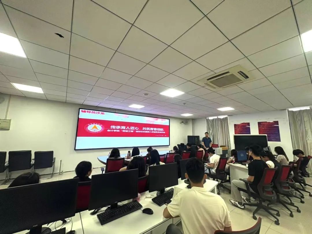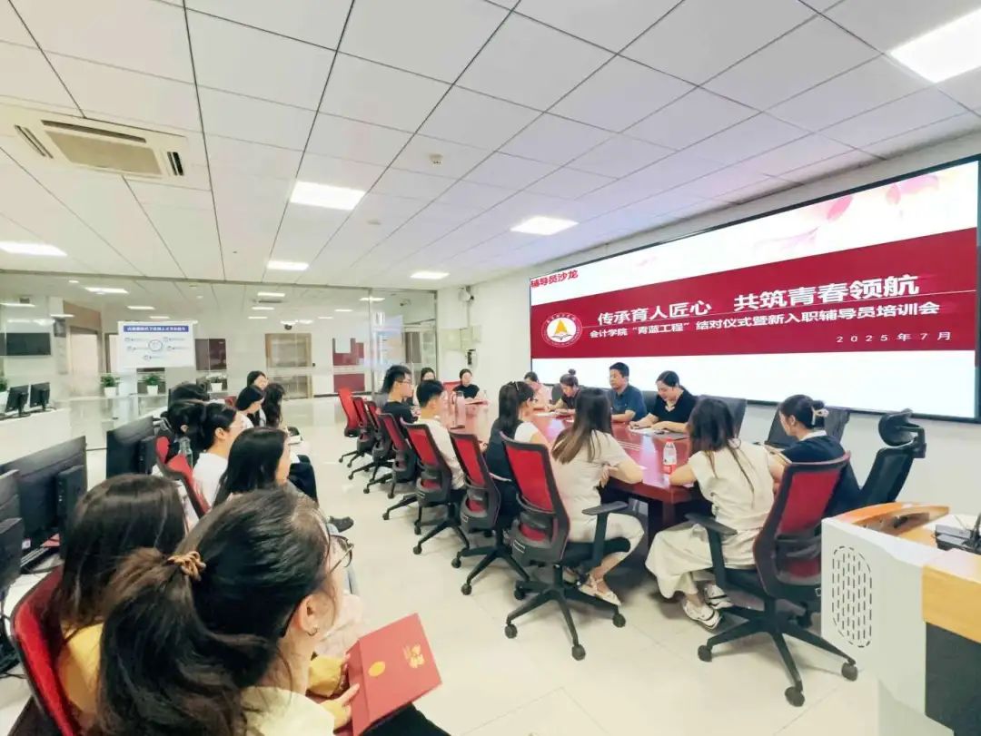 7月10日,会计学院在实训楼406隆重举行“青蓝工程”结对仪式暨新入职辅导员培训会。本次活动以“传承育人匠心 共筑青春领航”为主题,通过“以老带新、以新促老”的结对模式,搭建新老辅导员交流共进平台,实现双向赋能,同时为新入职辅导员筑牢业务根基,助力其快速适应角色、提升履职能力。学生处副处长席英僡、会计学院党总支书记胡国超、副书记李文静及全体辅导员共同见证这一重要时刻。 培训现场 薪火相传育桃李青蓝结对启新篇活动第一阶段,“青蓝工程”结对仪式在庄严而温馨的氛围中拉开帷幕。会计学院党总支副书记李文静详细介绍了“青蓝工程”的实施背景和重要意义。她指出,该工程是学院加强辅导员队伍建设的重要举措,通过资深辅导员的“传帮带”,帮助新辅导员缩短适应期,快速成长为思想政治工作的行家里手。 副书记李文静发言 在热烈的掌声中,4对结对青蓝双方辅导员依次上台,由学生处副处长席英僡为他们颁发聘书。一份份聘书不仅承载着责任与承诺,更象征着会计学院育人精神的代代相传。 学生处副处长席英僡颁发聘书 学生处副处长席英僡对会计学院“青蓝工程”结对仪式的举办表示热烈祝贺。她高度评价了会计学院辅导员队伍近年来在学生工作中取得的突出成绩,特别指出,会计学院辅导员团队始终秉持“以学生为中心”的工作理念,在思想引领、学风建设、心理健康教育等方面创新工作方法,打造了多个特色育人品牌,并强调这些成绩的取得离不开每一位辅导员的辛勤付出。她表示,学校将继续加大对辅导员队伍建设的支持力度,期待会计学院以“青蓝工程”为契机,培养更多政治素质过硬、业务能力精湛的新时代辅导员,为学校“三全育人”工作注入新动能。 学生处副处长席英僡讲话 专题培训强根基赋能成长促提升 活动第二阶段,学院围绕辅导员核心业务能力开展专题培训。高利岩老师首先以“迎新・军训・入学教育实务培训”为主题展开分享。她系统梳理了迎新工作的全流程要点,从前期筹备到现场组织,从应急预案到特色活动设计,结合多年工作经验,为新辅导员提供了可复制的“工作宝典”。针对军训和入学教育环节,高老师特别强调要把握“严管与厚爱相结合”的原则,在确保安全的前提下,帮助学生尽快适应大学生活。 高利岩老师分享 “学生干部是辅导员开展工作的得力助手。”周欣丽老师在“学生干部培养培训”环节中,从选拔机制、培养体系、考核激励三个维度,分享了打造优秀学生干部队伍的心得。她通过生动的案例,展示了如何发掘学生潜力、激发团队活力,为新辅导员提供了可操作的工作范式。 周欣丽老师分享 夏雨老师围绕“复合型人才培养”,详细解读了辅修、职业资格证书等学生关注的重点问题。她特别强调,辅导员要当好学生的“生涯规划师”,既要熟悉政策法规,又要了解行业动态,才能为学生提供精准的指导服务。 夏雨老师分享 冯云珠老师深入分享了会计学院国际化工作的创新理念与实践成果。她系统阐述了分阶段精准施策的工作方法,强调要根据学生不同成长周期特点,构建“大一启蒙-大二培育-大三实践-大四提升”的阶梯式培养体系。通过详实的数据和典型案例,冯老师展示了如何打造贴合学生发展需求的国际化转化路径,包括语言能力提升计划、国际证书考取辅导、海外名校交流对接等具体举措。 冯云珠老师分享 凝心聚力再出发砥砺奋进新征程会计学院党总支书记胡国超作总结讲话。他首先对“青蓝工程”的顺利实施表示祝贺,并对全体辅导员提出三点希望:一是要坚守育人初心,以高度的责任感和使命感做好学生工作;二是要注重能力提升,在实践中学真知、悟真谛、长本领;三是要加强团队协作,形成互学互鉴、共同进步的良好氛围。胡书记强调,辅导员队伍是开展大学生思想政治教育的骨干力量,学院将持续完善培养机制,为辅导员成长发展搭建更广阔平台。 党总支书记胡国超作总结讲话 本次“青蓝工程”结对仪式暨新入职辅导员培训会的成功举办,标志着会计学院辅导员队伍建设迈上新台阶。相信在学院的精心培育下,新老辅导员必将携手共进,为培养担当民族复兴大任的时代新人贡献青春力量! 文/会计学院 审核/数会2411 陈蕊