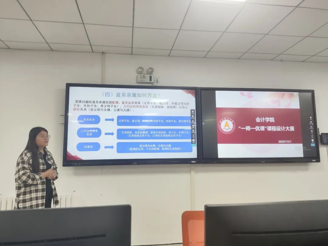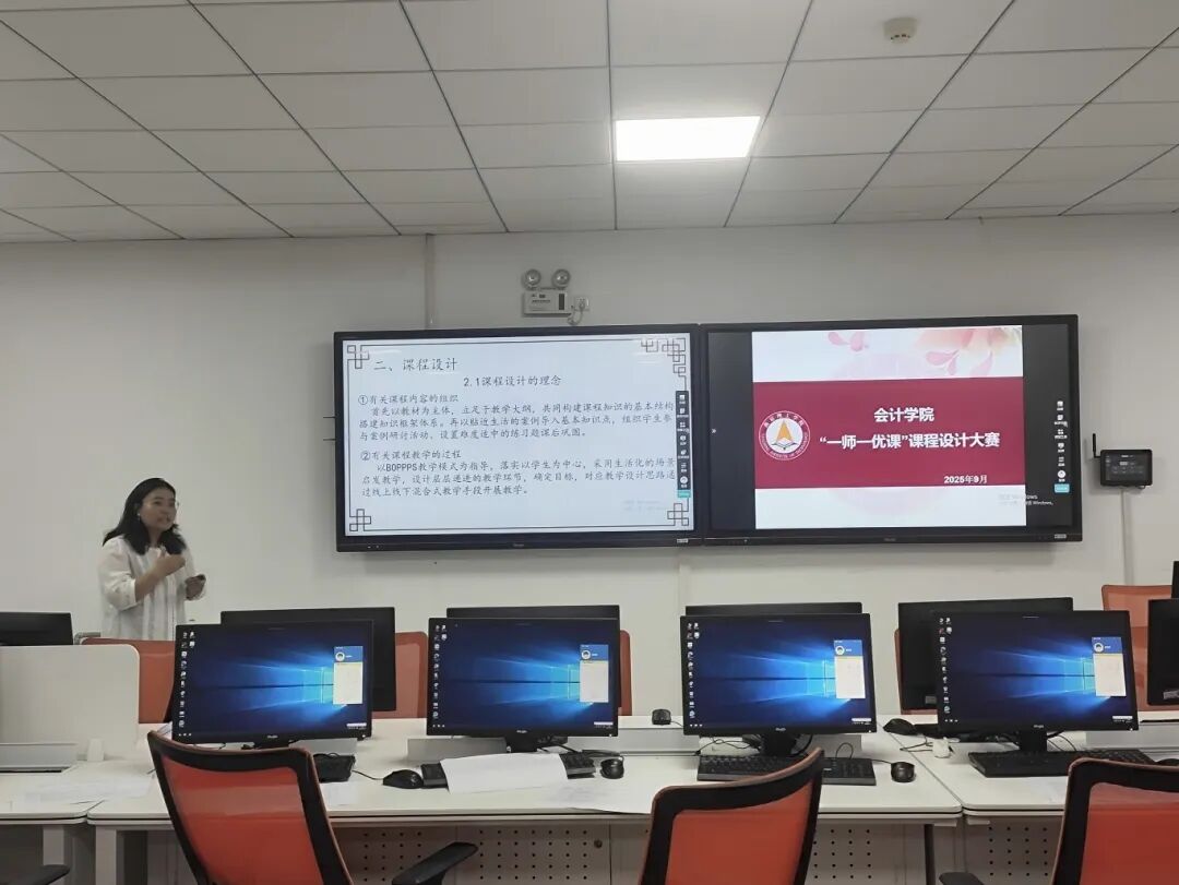 为深化课程教学改革,提升院内教师课程设计与教学创新能力,搭建教师间互学互鉴平台,2025年9月17日下午,在会计学院院长杨良教授的组织和指导下,会计学院于艺术楼403召开“一师一优课”课程设计大赛评比活动。 活动现场 本次大赛立足各专业教学实际,要求参赛教师围绕一门核心课程或特色课程,从“教学分析与教学理念、教学重点、教学实践、教学反思”四个维度,完成符合学院人才培养方案的完整课程设计方案。赛前,学院联合教研室开展多场内部培训,邀请院内优秀教师分享课程设计经验,指导参赛教师结合日常教学痛点,将数字化教学工具、案例教学法、情境模拟法等融入设计,确保作品兼具实用性与创新性。 比赛现场,9位参赛教师依次登台分享课程设计成果,各教研室教师代表到场观摩学习。参赛教师们紧密结合学科特点与学生实际需求,精心设计教学方案,针对初学者痛点或学生能力薄弱环节,构建“线上+线下”“理论+实训+答疑”等多元教学模式,立足课程实践性特点,创新情境模拟等教学形式,着力推动知识传授与实践能力、职业素养培养的深度融合。 参赛教师分享设计成果 点评环节中,评审组对参赛作品的整体质量给予充分肯定,认为此次评比集中展现了学院教师在课程设计中的扎实功底与创新思维,尤其是在教学模式优化、产教资源整合、思政育人落地等方面形成的有效经验,为全院课程建设提供了宝贵参考。 “一师一优课”课程设计大赛是学院推进教学质量工程的常态化举措,后续将组织教师开展系列教学工作坊,通过“理论分享+实操指导”的形式,深度拆解教学设计、课堂互动、作业反馈等教学环节,同时搭建线上资源共享平台,将优质课程视频、教案课件、创新案例等教学资源分类归档,形成可持续更新的数字化教学资源库,以多元方式促进教师间经验互通,全面提升教师队伍教学能力与课程质量,为培育高素质会计专业人才夯实教学基础。 文/会计学院 审核/注会2403 栗淼冉