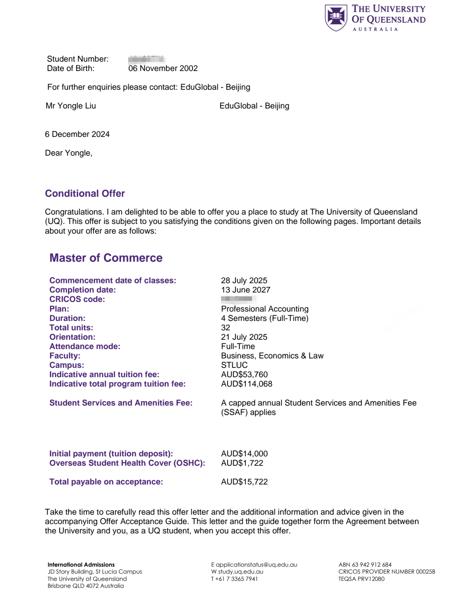 破浪逐梦 录取铸荣2025届海外深造国际班学子斩获海外名校Offer(三)