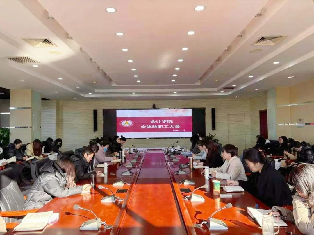2026年1月21日,会计学院在办公楼528会议室召开2025年度教育教学工作总结大会。会计学院院长杨良教授主持会议,学院全体教职工参会,共同回顾过去一年的工作成效,展望未来发展蓝图。 会议伊始,杨良院长代表学院向全体教职工一年来的辛勤付出表示感谢。她指出,2025年是学院主动适应数字经济时代、深化教育教学改革的关键一年。会计学院深入学习贯彻习近平新时代中国特色社会主义思想,落实立德树人根本任务,面对新形势新要求,学院在专业建设、课程改革、人才培养等方面取得了扎实进展。 会议现场 为响应国家数字化转型战略,学院成功申报并获批开设“业财数据应用与管理”新专业。该专业深度融合会计学、数据科学与管理学,致力于培养精通数据分析、具备业财融合视野的复合型应用人才,标志着学院学科布局优化迈出重要一步。 会计学院以学生发展为中心,持续优化课程体系,重点建设“智能财务”“大数据审计”等前沿课程。通过深化校企合作、强化实践教学、学科竞赛,学生创新实践能力显著提升。2025年,学生在多项国家级、省级竞赛中获得佳绩,毕业生就业质量与社会认可度稳步提高。 学院坚持引育并举,引进多名跨学科背景青年学者,支持教师赴企业实践研修,“双师型”教师比例进一步提升。科研方面,教师在智能会计、环境财务等领域产出多项高水平成果,有力支撑了教学创新。 学院始终将安全管理放在首位,完善实验室、教学楼等场所的安全制度,全年未发生重大安全事故。同时,不断改善教学科研环境,为师生工作学习提供有力保障。 会议现场 本次会议总结了过去一年的工作成果,明确了未来发展方向,为新一年各项工作开展奠定了坚实基础。未来,会计学院将继续以立德树人为根本,以新专业建设为契机,深化产教融合,推动教育教学数字化转型,着力培养适应时代需求的高素质应用复合型财会人才。 文/会计学院 审核/税收2501 刘萌